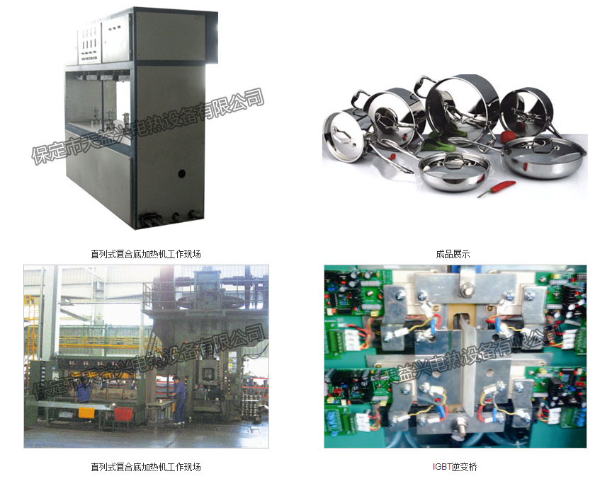 主要用于復(fù)合底鍋壓焊前的預(yù)熱,與摩擦壓力機(jī)配合,可實現(xiàn)復(fù)合金屬煲底壓焊工藝,俗稱“打底”。加熱機(jī)電源和機(jī)床均由微機(jī)控制,是由多套微機(jī)控制的電氣、機(jī)械、氣動一體化技術(shù)設(shè)備。
